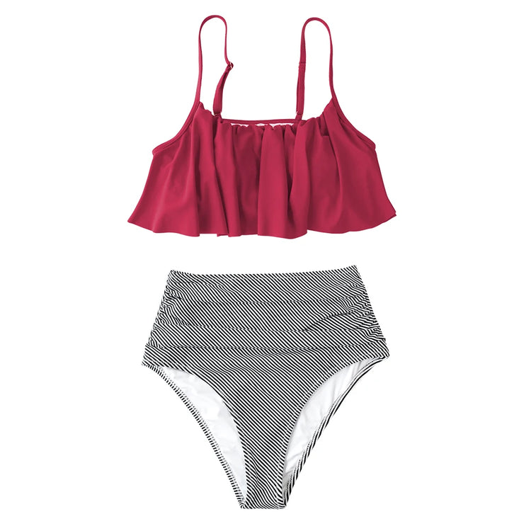 Upgrade your beach look with a chic and comfortable bikini set. Made with a blend of 80% chinlon and 20% spandex, this set provides the perfect balance of stretch and support. With a high-waist design, it offers a flattering fit that stays in place while you swim or lounge in the sun. Designed for regular wash, this two-piece set is easy to maintain and will last through many beach adventures. With solid or stripe patterns to choose from, you'll find one that suits your personal style. Add it to your vacation wardrobe and look stylish and confident at the beach, pool, or wherever your travels take you.