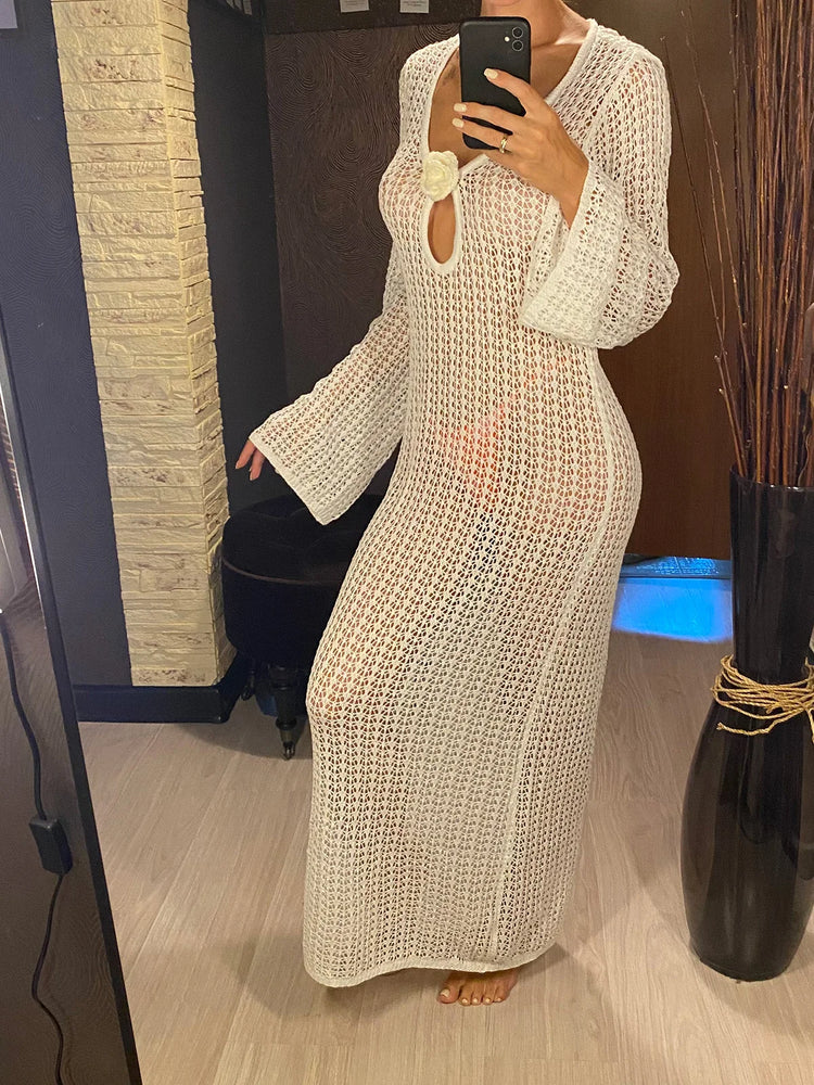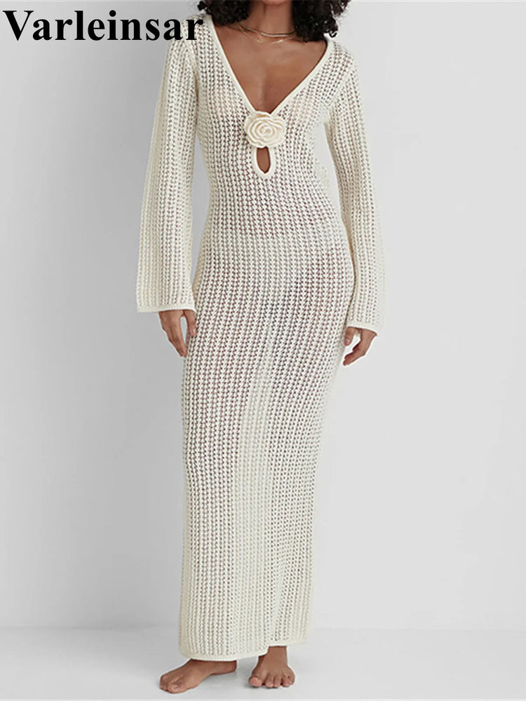 V Neck Crochet Tunic Beach Cover Up Dress