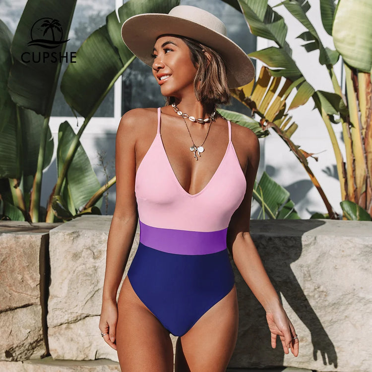 Stay stylish and comfortable without sacrificing support with this V-Neck Printed One Piece Swimwear. Made with a blend of 80% chinlon and 20% spandex, this swimsuit is designed to fit true to size, ensuring a perfect fit every time. The adjustable shoulder straps and shelf bra with padded cups provide both style and functionality, while the regular wash care instructions make maintenance a breeze. Whether you're lounging on the beach, swimming in the pool, or surfing in the ocean, this swimsuit has got you covered. Plus, with its vibrant patchwork design and backless, crisscross decoration, you'll turn heads wherever you go. Expertly crafted to handle all of your summer activities, this is a must-have addition to your swimwear collection.