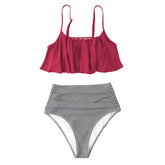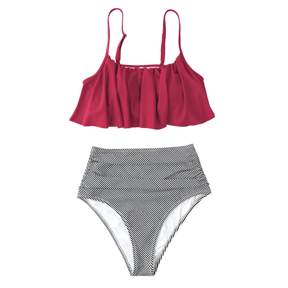 Upgrade your beach look with a chic and comfortable bikini set. Made with a blend of 80% chinlon and 20% spandex, this set provides the perfect balance of stretch and support. With a high-waist design, it offers a flattering fit that stays in place while you swim or lounge in the sun. Designed for regular wash, this two-piece set is easy to maintain and will last through many beach adventures. With solid or stripe patterns to choose from, you'll find one that suits your personal style. Add it to your vacation wardrobe and look stylish and confident at the beach, pool, or wherever your travels take you.
