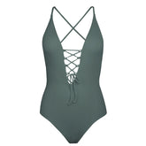 Maximize your comfort and style with the Backless Deep V-Neck One-piece Swimsuit. Crafted with 91% nylon and 9% spandex, this swimsuit provides a perfect fit for all body types. The adjustable shoulder straps, ribbed fabric, and lace up front give you the flexibility to customize your look and feel. Plus, with its padding bra, this swimsuit offers optimal support and shaping for a flattering silhouette. Whether you're traveling, hitting the beach, or swimming, this versatile swimsuit is designed to keep up with your active lifestyle.