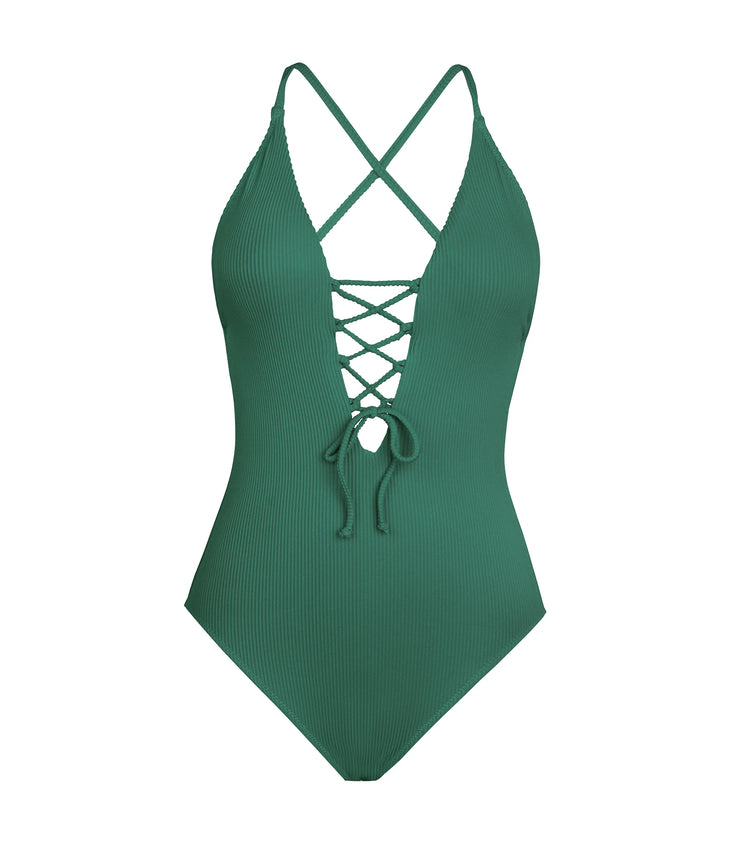Maximize your comfort and style with the Backless Deep V-Neck One-piece Swimsuit. Crafted with 91% nylon and 9% spandex, this swimsuit provides a perfect fit for all body types. The adjustable shoulder straps, ribbed fabric, and lace up front give you the flexibility to customize your look and feel. Plus, with its padding bra, this swimsuit offers optimal support and shaping for a flattering silhouette. Whether you're traveling, hitting the beach, or swimming, this versatile swimsuit is designed to keep up with your active lifestyle.