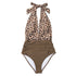 Floral Deep V-neck Halter One-Piece Swimsuit