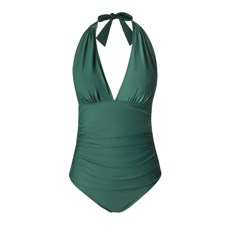 Floral Deep V-neck Halter One-Piece Swimsuit