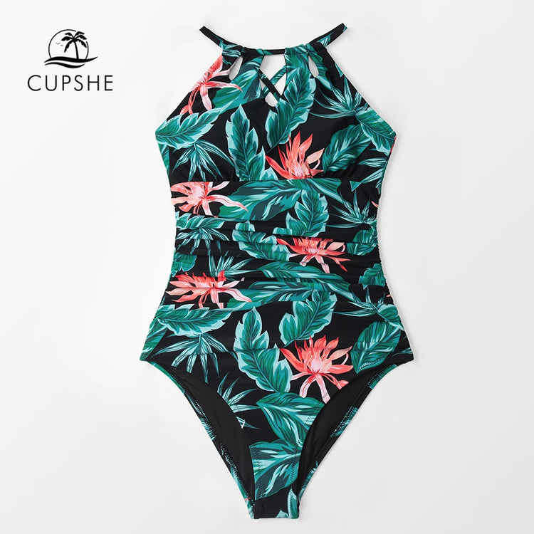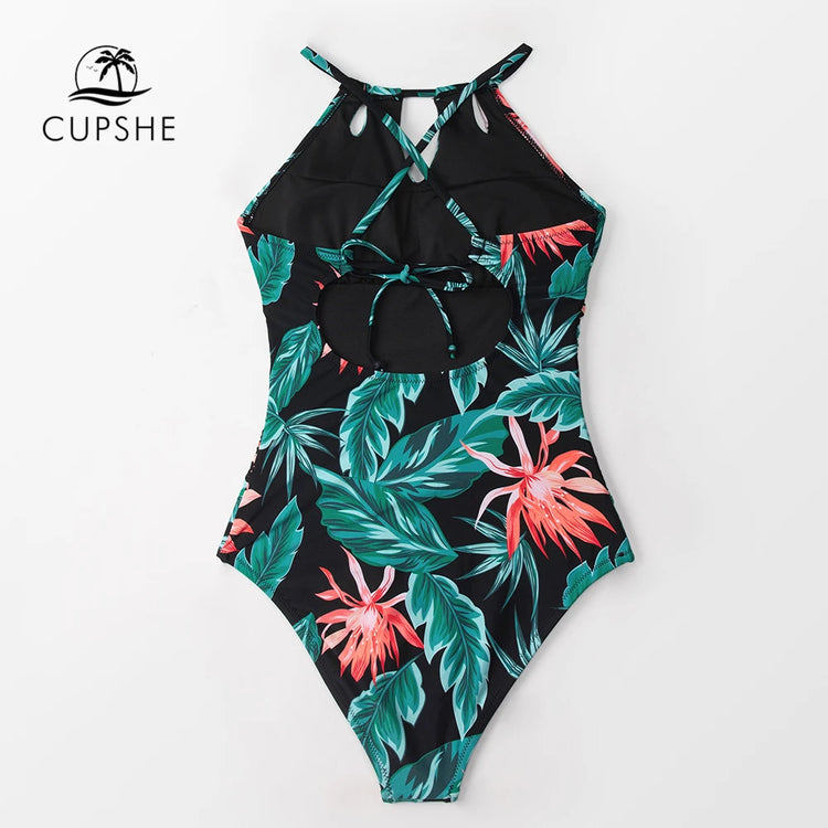 Look effortlessly stunning in this Green Floral Cutout Halter One-Piece Swimsuit by CUPSHE. Crafted with 80% Chinlon and 20% Spandex, this suit provides the perfect combination of comfort and durability. The lace-up back and back crisscross straps add a stylish touch while ensuring a secure fit. With removable padded cups, you can customize the level of support you need. Perfect for any occasion, from beach days to pool parties, this suit is a must-have for your summer wardrobe. Trust in the quality and expertise behind CUPSHE's design, and embrace your inner fashionista with this stunning one-piece.
