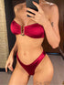 Expertly crafted with a knit weave and made from high-quality, durable polyester and spandex materials, this bikini set is designed to fit perfectly and provide comfortable support. With its low waist and solid pattern, it's perfect for beach outings and comes without any harmful chemicals. Plus, the added features of wire-free support and padded cups make it a must-have for any woman's wardrobe.
