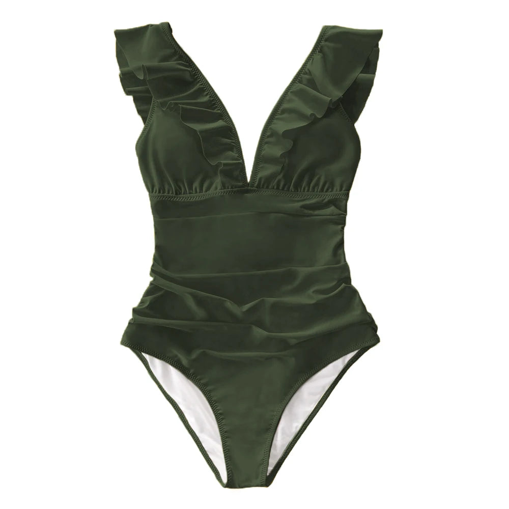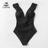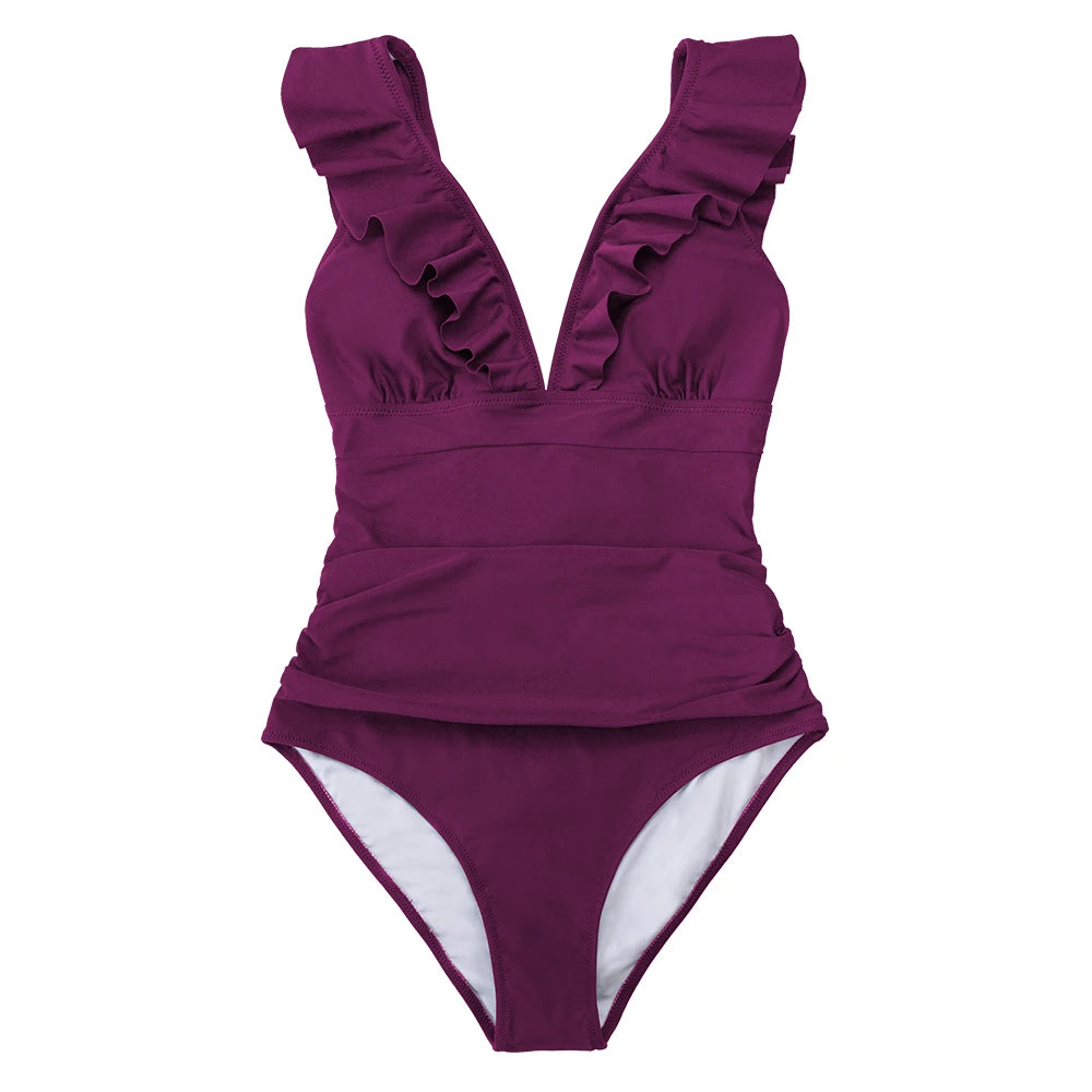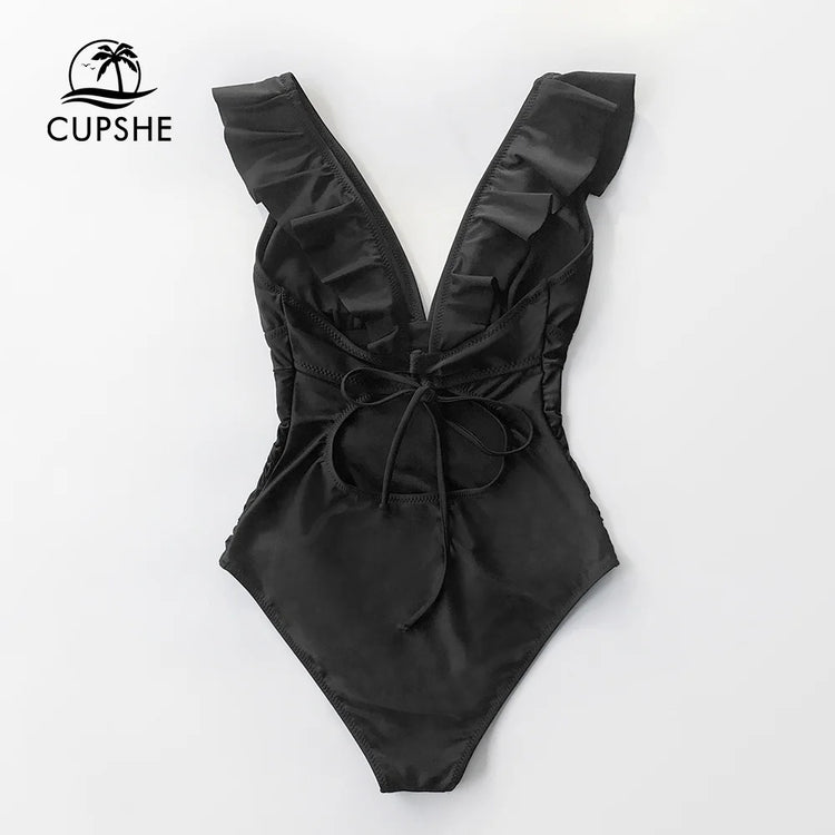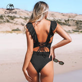 Stay comfortable and stylish in this swimsuit that features ruffled, lace-up, and ruched details. Made with high-quality chinlon and spandex, this one-piece is perfect for the beach, swimming pool, vacation, surfing, or travelling. Its solid color and removable padded cups are sure to flatter any body type, while the regular wash care instructions make it easy to maintain for long-lasting wear. Don't compromise on quality and fit, this CUPSHE brand swimsuit is designed to fit true to size.