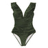 Solid Black Ruffled One-piece Swimsuit