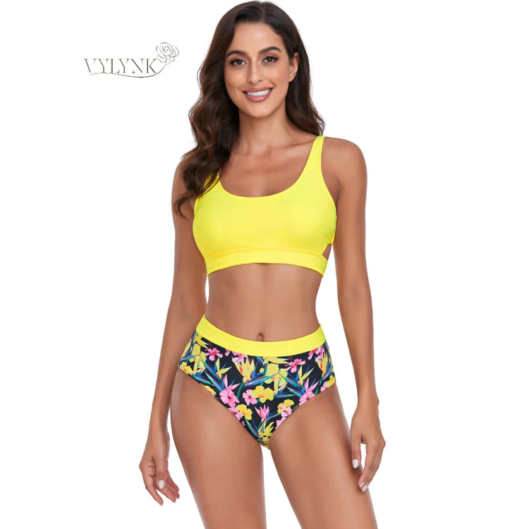 The VYLYNK Tummy Control High Waist Bikini Set offers the perfect blend of fashion and function. Made from high-quality polyamide material, this two-piece swimsuit provides comfortable bust support, with removable pads for added convenience. The adjustable shoulder straps ensure a perfect fit for sizes ranging from S to XL. With its beautiful floral print and vibrant colors, this bikini set is sure to turn heads at the beach or pool. Plus, the high waist design and back tie feature provide a flattering and slimming effect, making you feel confident and stylish. Upgrade your swimwear collection with the trendsetting VYLYNK Tummy Control High Waist Bikini Set, and enjoy free shipping on your purchase.