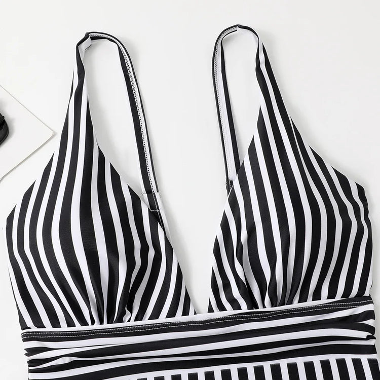 This elegant vintage swimsuit features a classic striped pattern and is carefully crafted with high-quality materials such as Spandex and Terylene. Its seamless fit is designed to complement your natural shape and its wire-free support and padding provide comfortable and flattering coverage. Perfect for women of middle age, this bikini set is sure to make a stylish and timeless addition to your wardrobe.