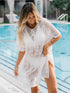 Effortlessly chic and perfect for warm weather, this crochet dress cover up is crafted from a blend of cotton and polyester that ensures both comfort and durability. With its fringe trim and geometric pattern, it's the perfect way to add a touch of bohemian style to your beach and pool days. Not to mention, its classic cut fits true to size, making it easy to style and wear. So whether you're lounging by the pool or exploring a new destination, this cover up has got you covered.