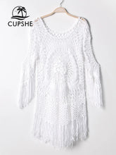 White Crochet Bikini Cover Up with Fringe Trim